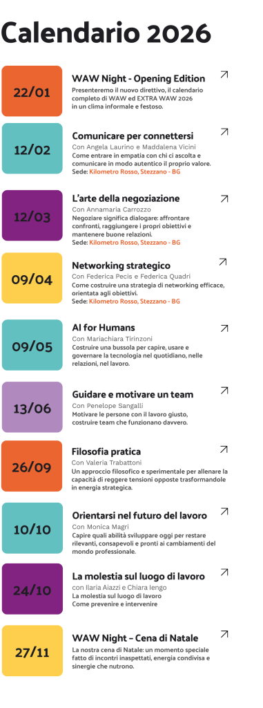 Un calendario pensato per chi vuole andare in profondità, per chi cerca contenuti che lasciano il segno e relazioni che aprono prospettive di valore.